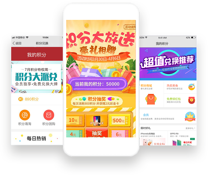 用户参与企业营销活动获取积分,换购电子卡券。